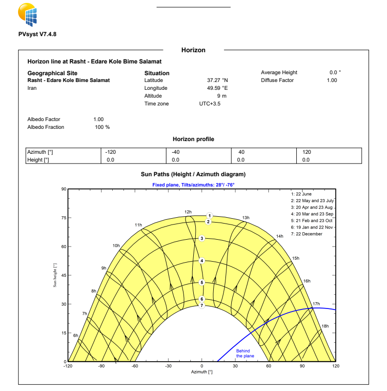 تصویر فوق روند حرکت خورشید و تابش در ماههای سال نسبت به موقعیت مکانی پروژه را نشان میدهد.
