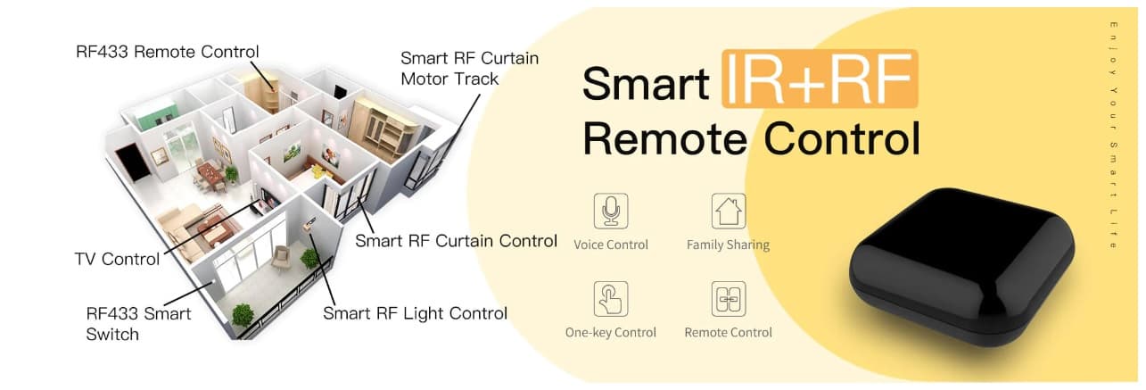 ریموت کنترل هوشمند مرکزی با پوشش دهی فرکانس های  IR , RF  یک گجت هوشمند همه کاره است که با اتصال به اینترنت و کنترل از طریق گوشی موبایل امکان مدیریت تمامی وسایل برقی را از راه دور به ما می دهد . با استفاده از دستیار صوتی الکسا آمازون و گوگل نیز می توان فرمان صوتی اجرا کرد و از زندگی هوشمند لذت برد . تمامی وسایل دارای ریموت کنترل را می توان به این کنترلر مرکزی معرفی کرد و از راه دور زمانبندی و مدیریت کرد.